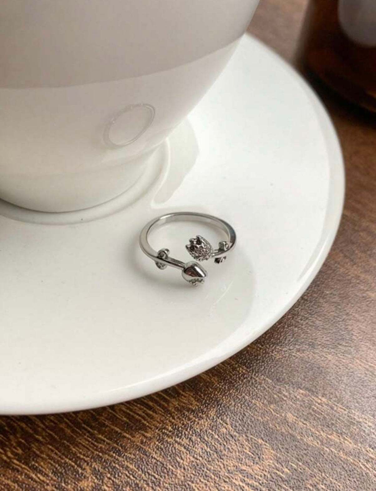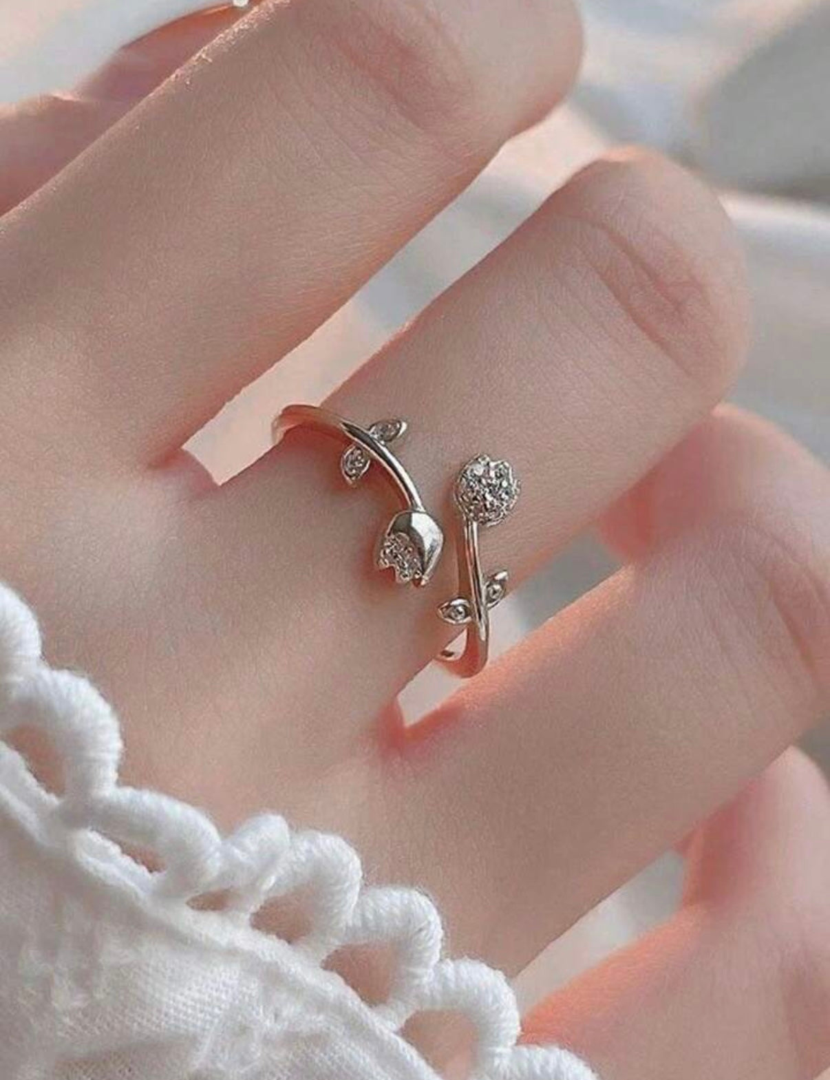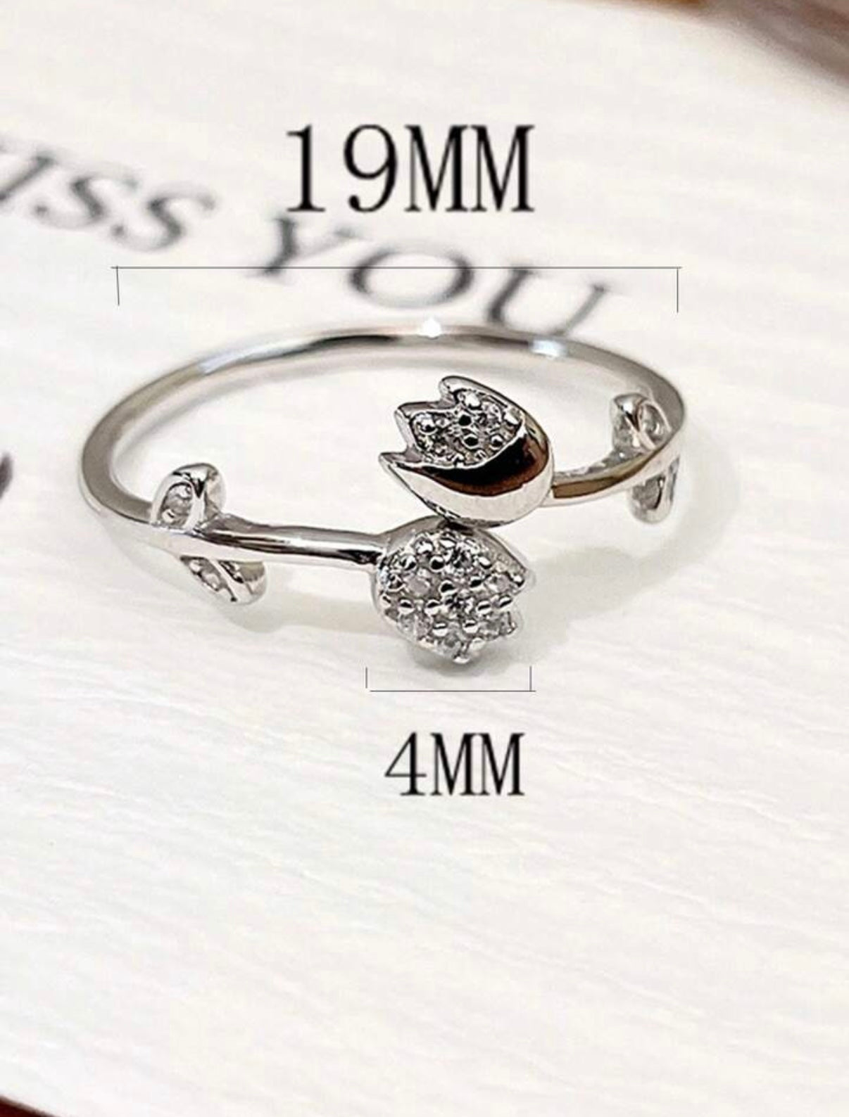 Anillo Abierto y ajustable de plata de ley 925 con Tulipán y Diamantes