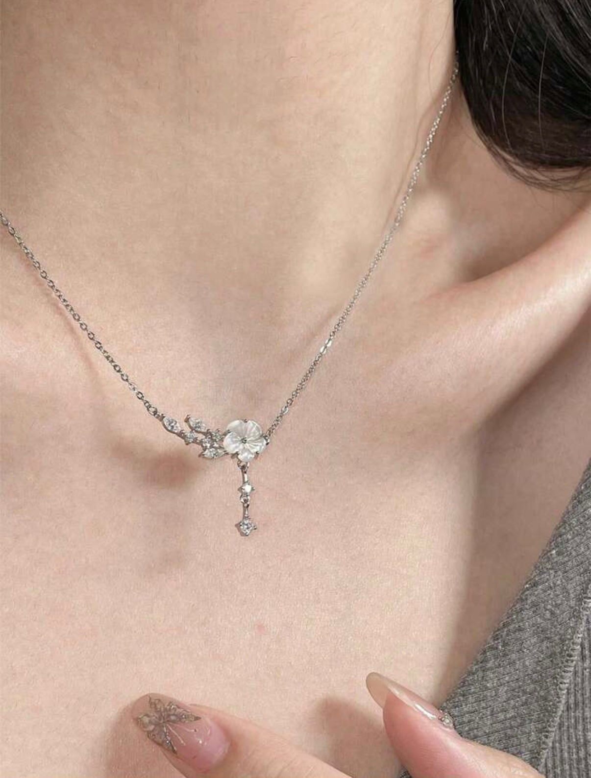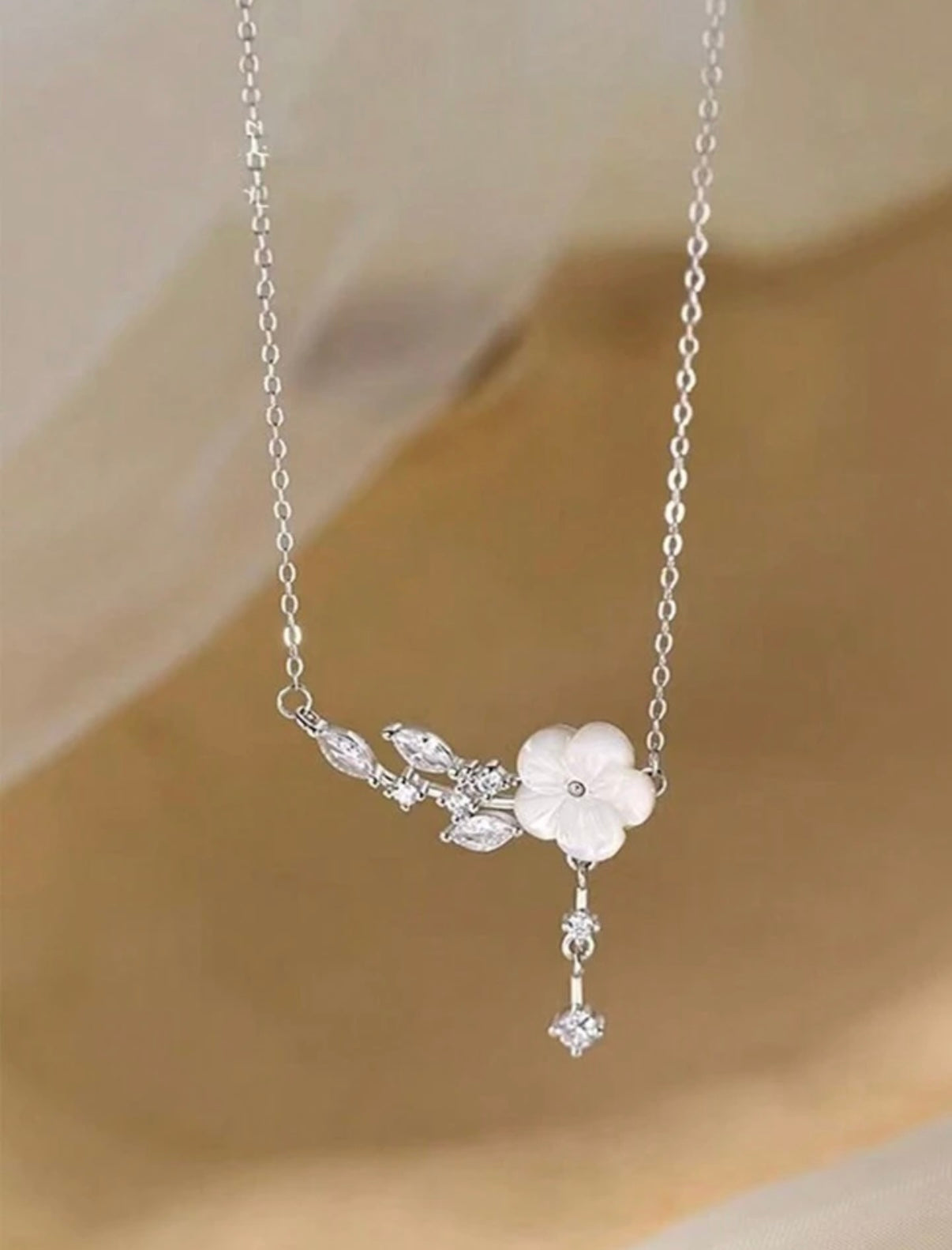 Collar de Plata de Ley 925 con Flor Colgante y Detalles de hojas con diamantes